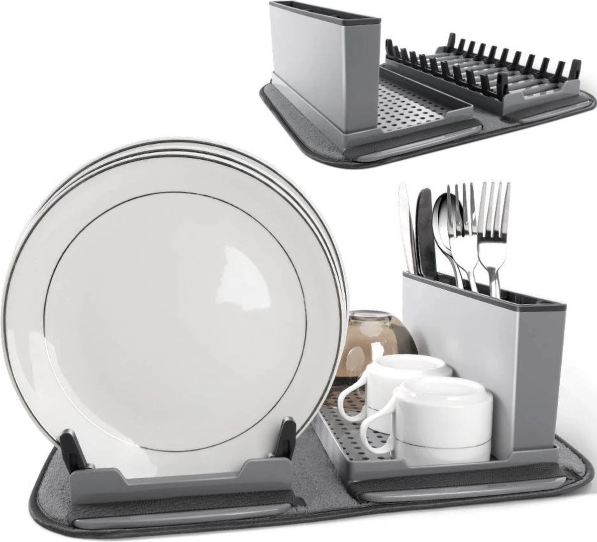 Afdruiprek Met Lekbak – Inclusief Afdruipmat – Opvouwbaar – Afwasrek Met Uitneembare Bestekhouder – Voor Bestek, Borden, Pannen En Schalen