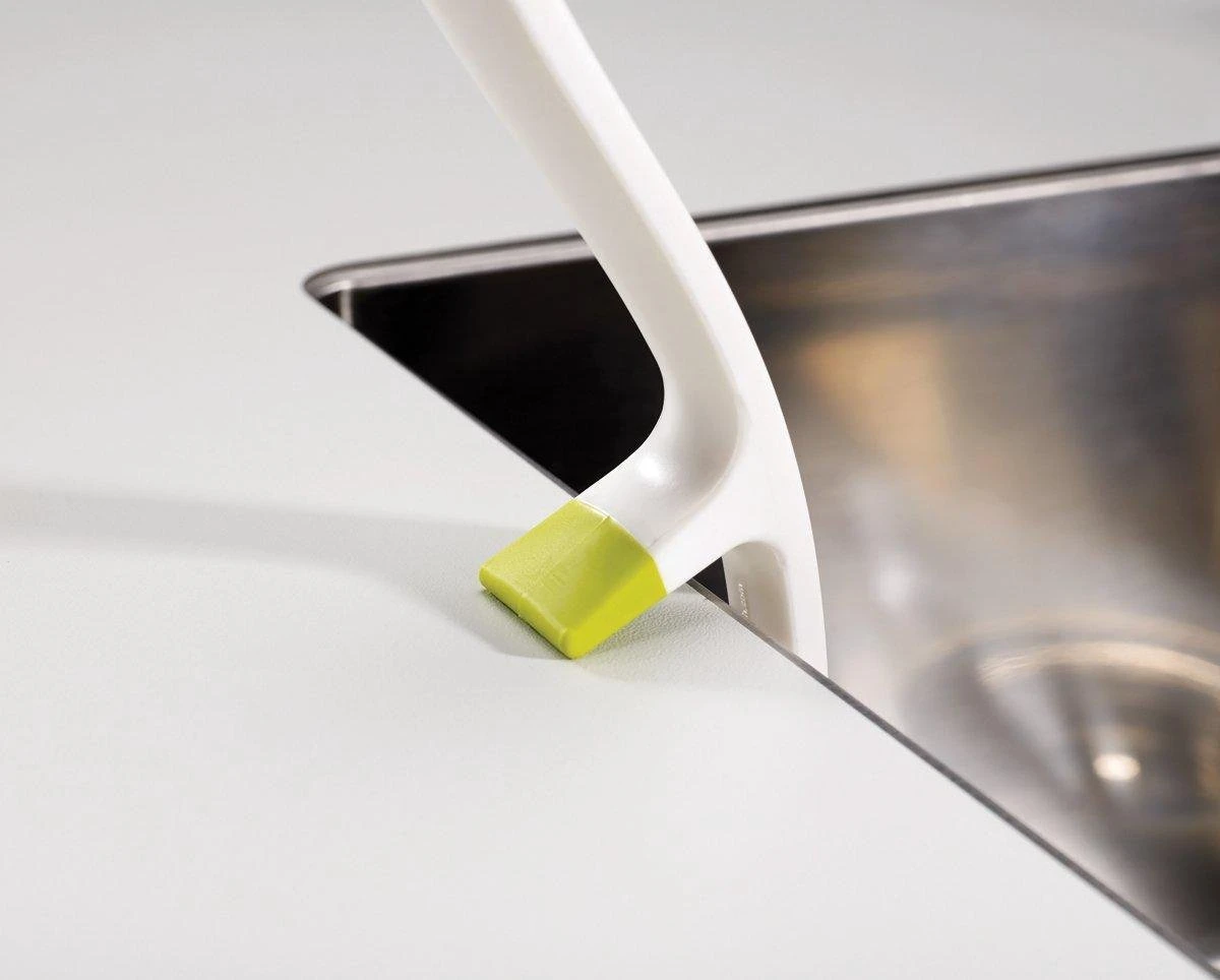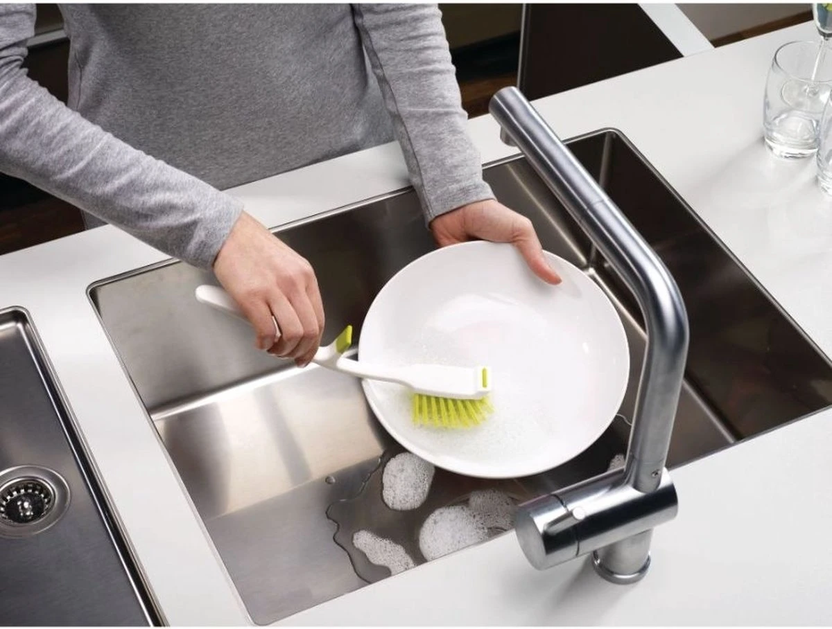 Met de afwasborstel Edge van Joseph Joseph was je eenvoudig al jouw vuile vaat af! Dankzij de harde haren zijn jouw vuile borden in een mum van tijd schoon en de geïntegreerde panschraper zorgt ervoor dat ook jouw pannen zo schoon zijn. Na gebruik hang je de borstel eenvoudig via de gootsteensteun op aan de gootsteen. Hierdoor loopt het overtollige sop en water makkelijk weg in de gootsteen. Jouw afwasborstel is hiermee niet alleen snel schoon, maar bespaart ook nog eens ruimte! Ben je op zoek naar een andere kleur? De afwasborstel is ook te koop in het wit!